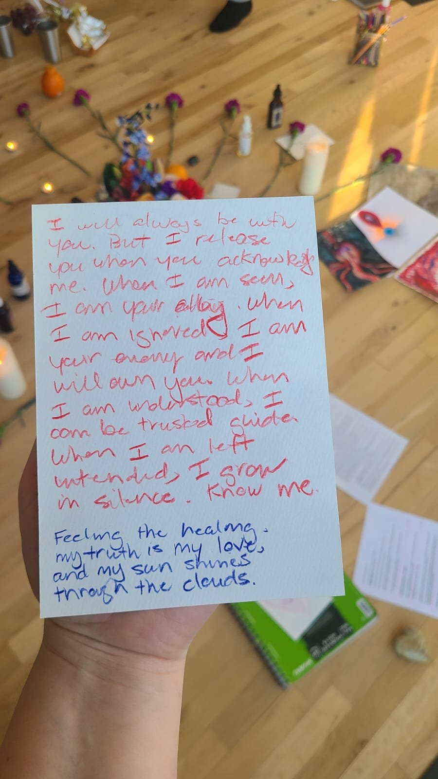 These circles, co-guided by Jen and Anthea, are meant to create a space of deep support to get in touch with and process the emotions that are hard to reach on one's own. During this 2.5 hour experience participants are guided through a somatic journey of guided and free movement, journaling, and community sharing.
